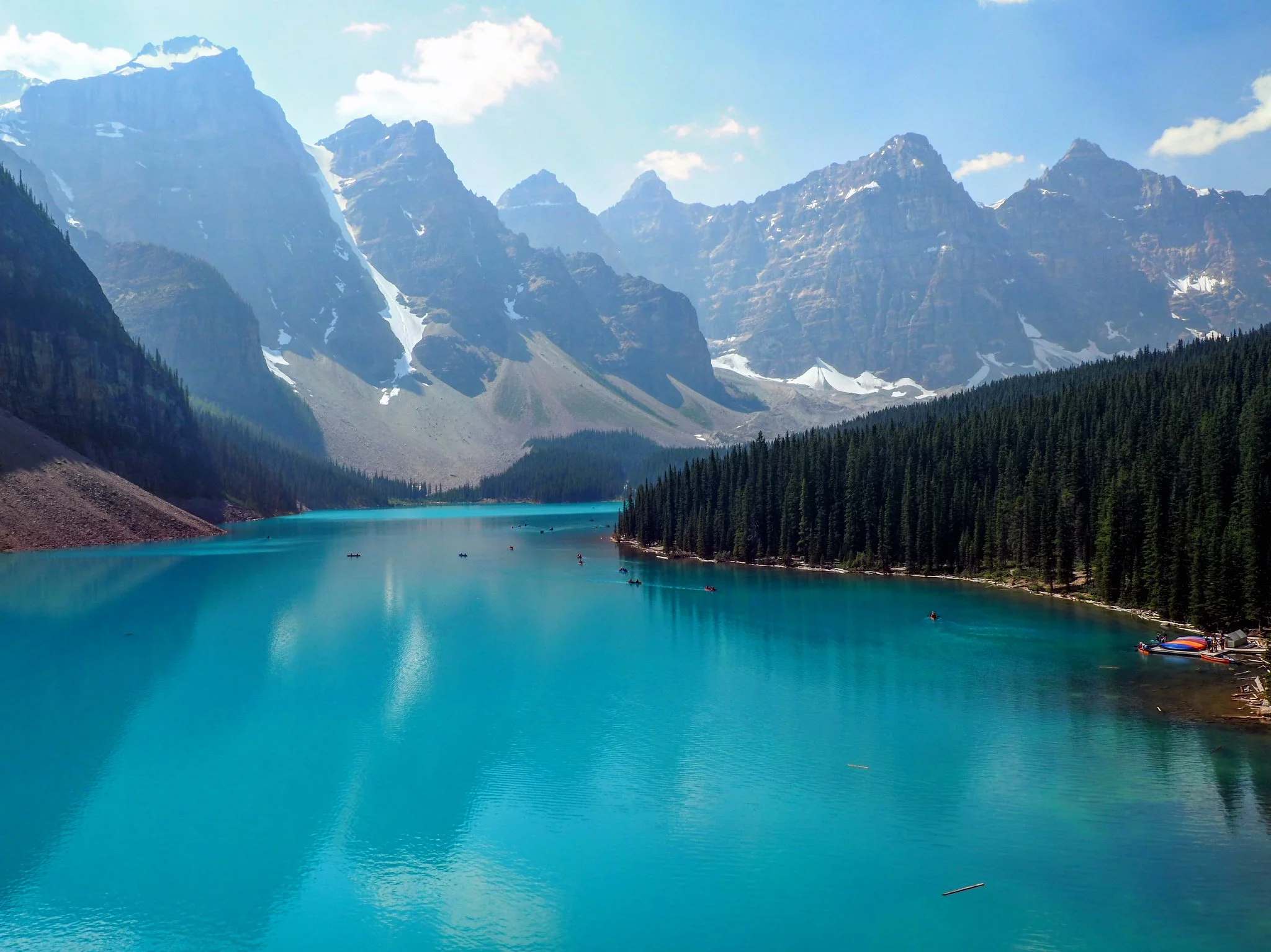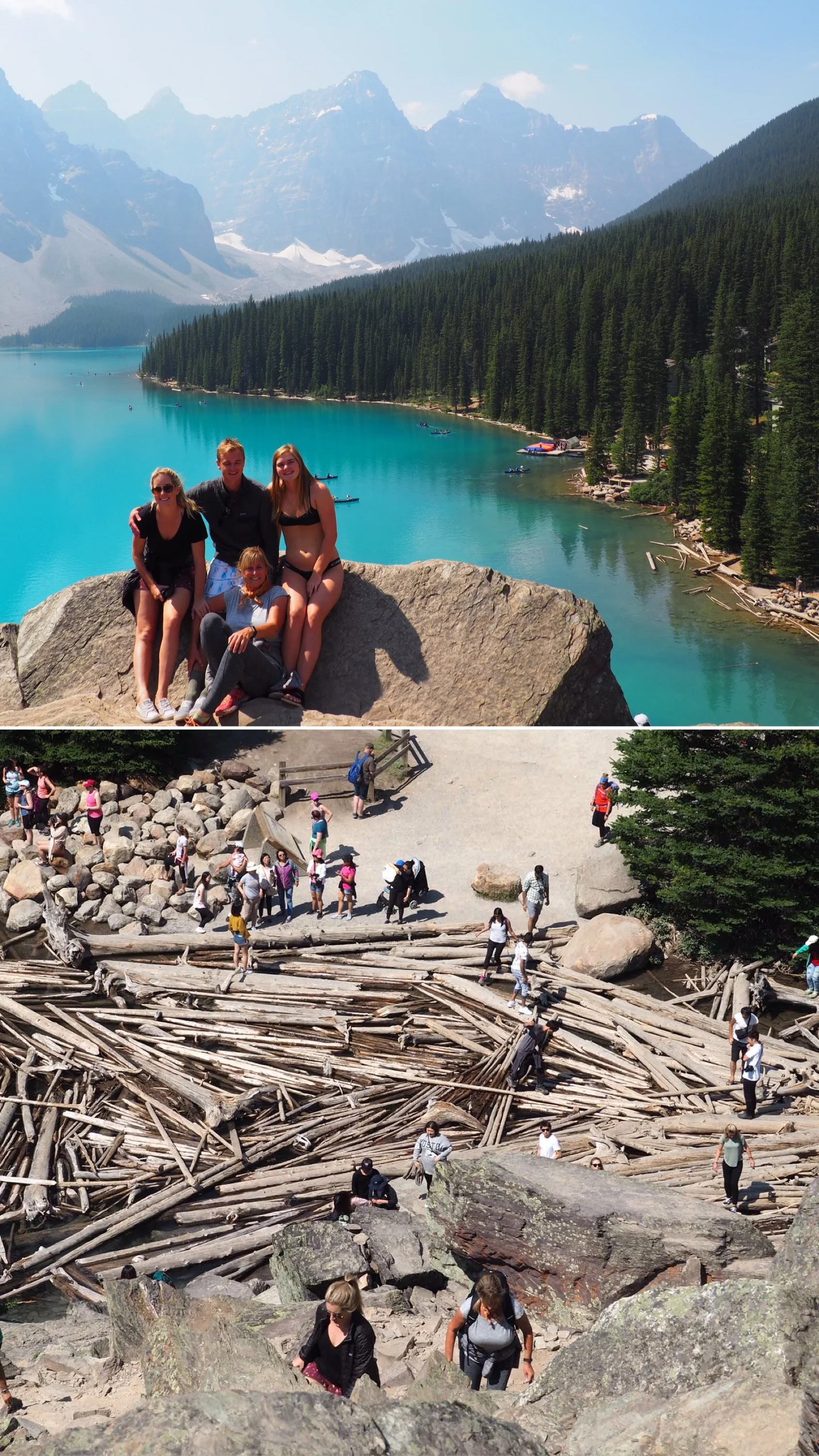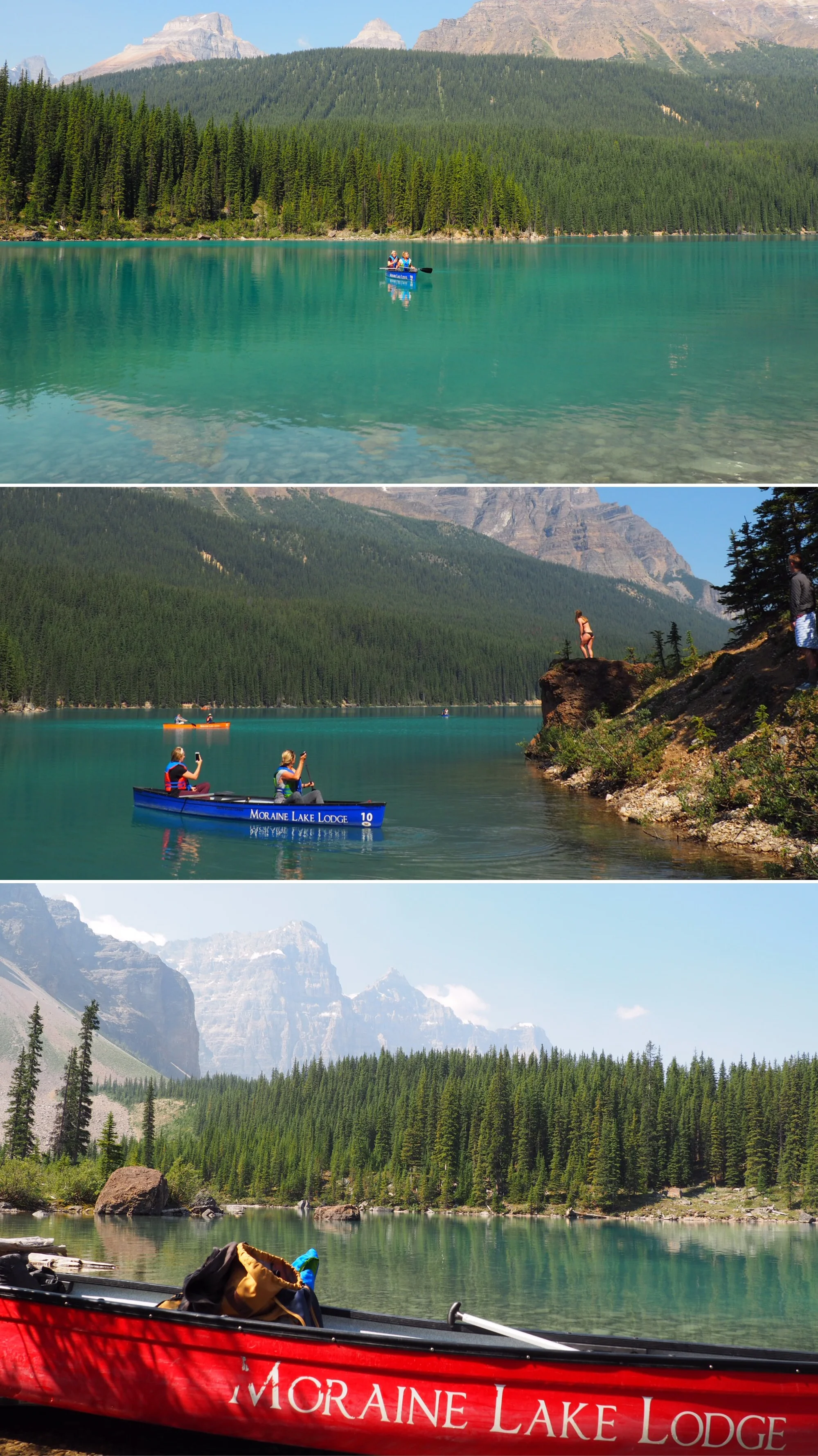 Moraine Lake on Sunday. We were lucky to enter and get a parking spot. They limit the crowds by closing down the road when it gets busy.