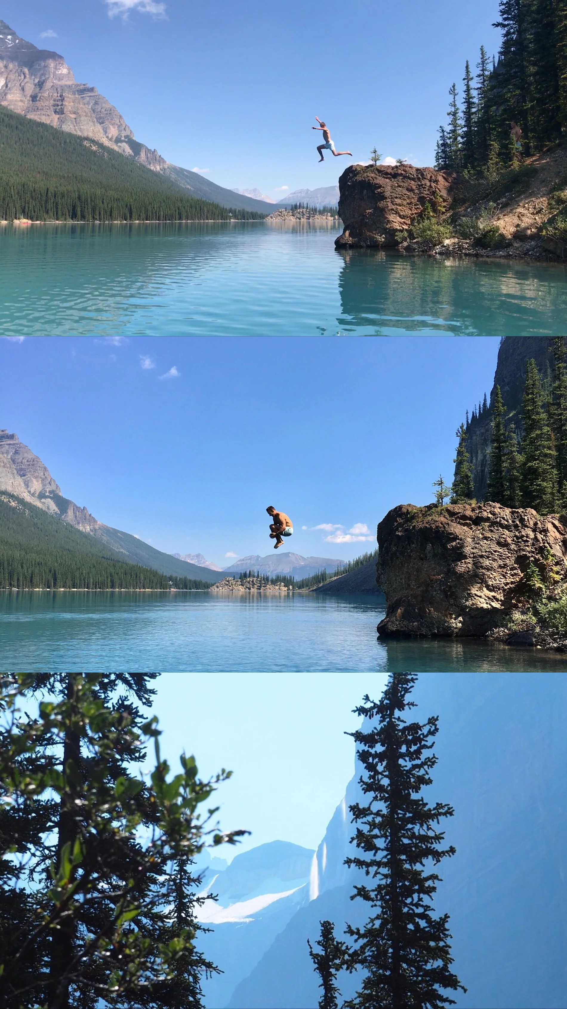 water temp was 38 degrees and felt (shockingly) refreshing after a paddling across the lake. James at the top and me in the middle jumping off a rock