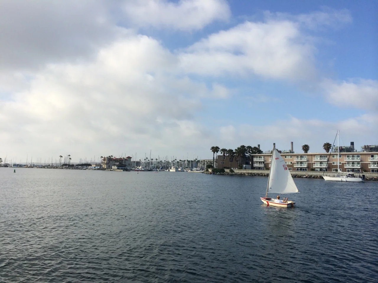 You might not believe all these pictures were in the same day, but it was a crazy weather system in the South Bay. I say that, because I left to sail in strong(ish) wind and hot sun (notice the hat which I found last weekend floating in the marina is now on my head), saw Palos Verdes to the south and it was swamped in a rain storm, so I sailed over to A Cenoura and told Mia (who was studying) to close all the windows in case the rain gets up to us. I then sailed over to the main channel when I saw lightning strike south redondo, probably a mile away, so I got back to my dock and out of my sabot real fast. It started to downpour just then and there, and the wind completely died - so I’m glad I made it back when I did.